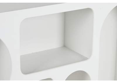 Fabricado en MDF es un aparador que destaca por sus lineas curvas y sus cabidades fuera de lo común. Perfecto para crear un espacio diferente en el que poder exhibir tus objetos más preciados.