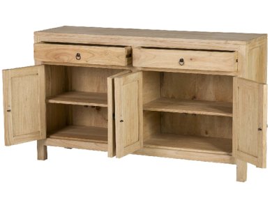 El aparador en madera de midi en color natural fusiona elegancia y funcionalidad con su diseño de líneas suaves y forma redondeada. Sus dos cajones y cuatro puertas ocultan un amplio espacio de almacenamiento interno, perfecto para mantener todo en orden y al alcance de la mano. Ideal para cualquier habitación, este aparador se integra a la perfección con el resto de la colección para lograr un look armonioso y estilizado.