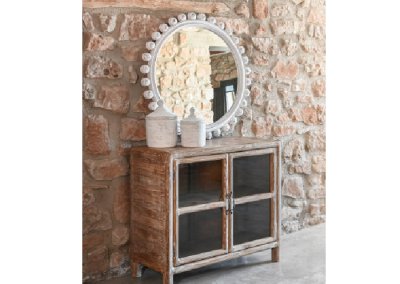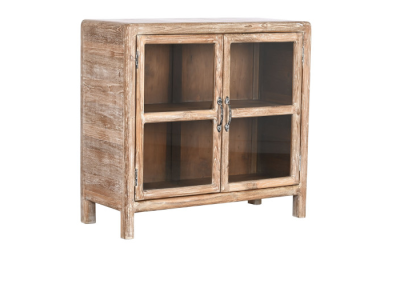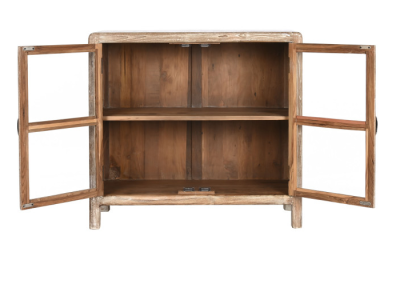 Bonito, funcional y encima con materiales reciclados, así es el aparador Teca un mueble con mucho espacio de almacenamientos y dos puertas abatibles con cristal para que puedas colocar todo lo que quieres que quede a la vista. Con sus patas que lo elevan facilita la limpieza a su alrededor.