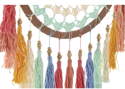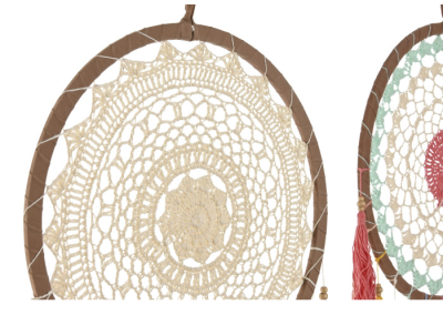 La decoración de pared es un recurso fantástico para llenar de estilo cualquier estancia. El atrapasueños algodón está fabricado en algodón, es el complemento ideal para vestir las paredes de tu hogar, aportando un toque distinguido y original a cualquier pared del salón, comedor o dormitorio. Disponible en dos modelos diferentes para que escojas el que más te guste.