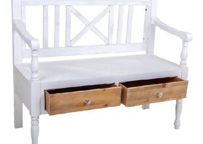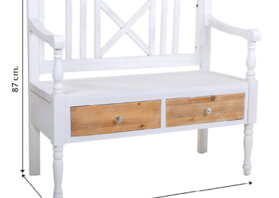 El banco de madera reúne todas esas cualidades, fabricado en madera de abeto contrachadado en blanco esta lleno de detalles y sus dos cajones donde puedes guardar tus cosas en color natural le aportan un toque natural y aumenta sus posibilidades de convertirse en un elemento más de tu decoración.