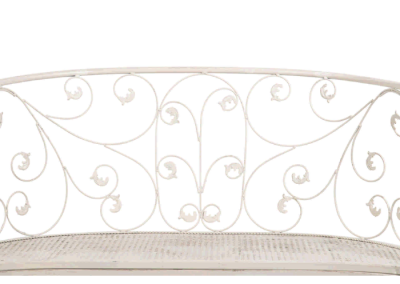 El banco forja Antique es un banco fabricado en forja lleno de detalles y con unos acabados inmejorables. Su ornamento está pintado en blanco con un efecto desgastado, gracias asu color neutro hará que cualquier cojín que decidas colocar sea el centro de todas las miradas.