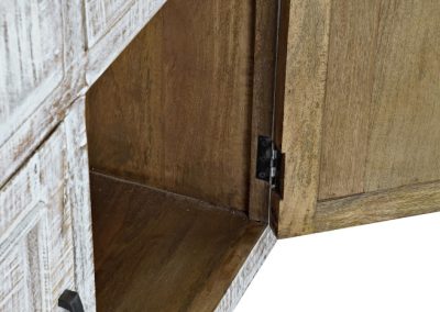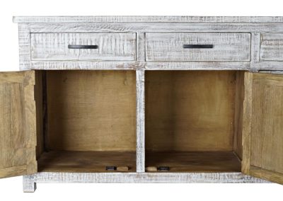 El Buffet en madera de mango decape destaca por su diseño original que combina cajones con puertas. Un mueble robusto y resistente, fabricado en madera de mango, con un acabado en blanco envejecido, mantiene las irregularidades del propio material principal. Cuenta con detalles que le aportan un aire vintaje. Perfecto para decorar la entrada de tu casa o en el salón como almacenaje extra, este buffet es perfecto en cualquier estancia. Decóralo con una lámpara de mesa o un jarrón de cristal que podrás encontrar en nuestra web.