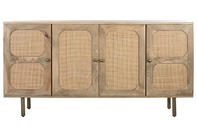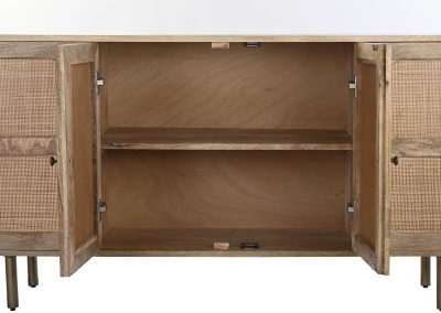 Al buscar un mueble que nos aporte un extra de almacenamiento, no podemos renunciar a que sume estilo a la decoración del hogar, el buffet de mango y ratán aúna estas dos cualidades fundamentales. Gracias a sus 4 puertas, te permite mantener tus estancias limpias y ordenadas. Está fabricado en madera de mango 100% y unos detalles en ratán, un material resistente y atemporal que combina a la perfección con cualquier estilo de decoración en el recibidor, salón o dormitorio. Combínalo con el resto de muebles de la misma colección y dale a tu hogar ese toque exótico y elegante que te cautivará.