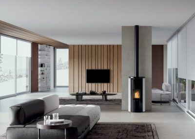 Modelo diseñado para un fácil acceso a mantenimientos. Largo: 54cm. Profundidad: 57cm. Altura: 111cm. Potencia útil: 2,7-9,6kw. Rendimiento (%): 90,7%. Consumo mín-máx. (kg/h): 0,6-2,2kg/h. Volumen calefactable (m3): 250m3. Capacidad del depósito (kg): 16kg/h. Autonomía mín-máx (h.): 7-27. Diámetro salida de humos (mm): 80mm. Diámetro aspiración de aire (mm): 60mm. Programación diaria / semanal. Función EASY TIMER. Sistema The Mind con WI-FI integrado. Función RELAX.