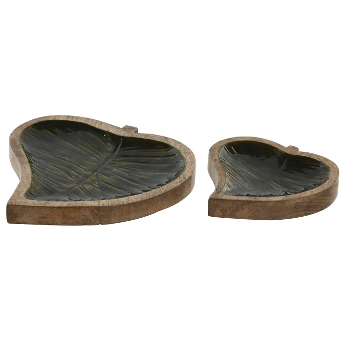 Funcionan igual de bien juntos como por separado. Están fabricado en madera de mango con una bonita forma de hoja, y con el interior esmaltado en un bonito color verde.