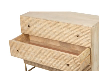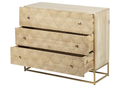 Una fiel ayudante de los armarios son las cómodas. Conjuntar tu mobiliario con la Cómoda en madera de mango-metal es todo un acierto. Está fabricada en madera de mango, un material noble, muy resistente y sólido. Presenta un diseño muy clásico, pero con aires renovados. Se compone de amplios cajones que te permitirán guardar todo lo que necesites, y así mantener tus estancias bien recogidas y organizadas. Solo necesitarás acompañarla con una velas, alguna lámpara de mesa o unos jarrones con flores en colores vivos para llenar tu salón, recibidor y dormitorio de mucho encanto y lujo.