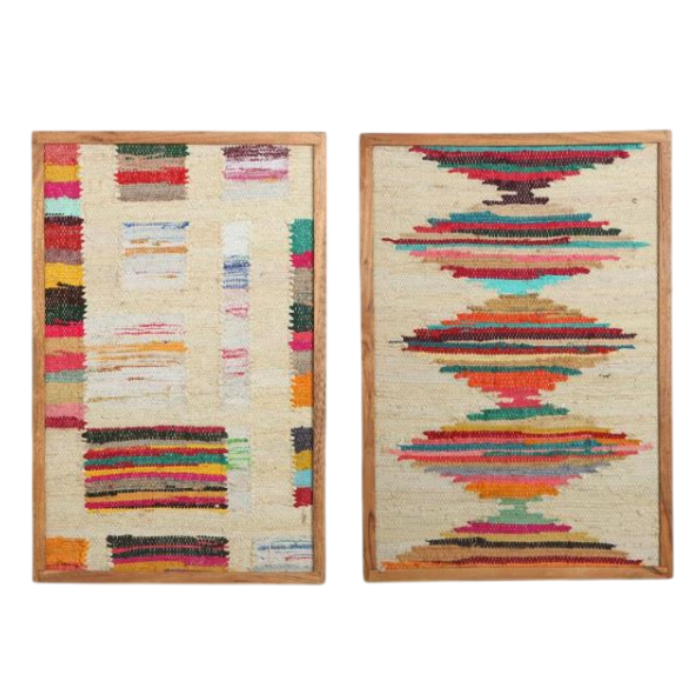 El cuadro Chindi disponible en dos modelos tanto para combinar como para usas por separado es uno de esos artículos. Fabricado en algodón con un marco de acacia son perfectos para añadir originalidad y estilo a tu decoración.