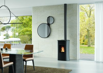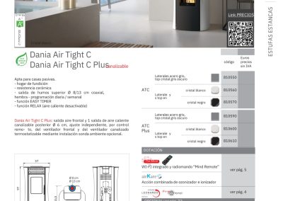 Modelo diseñado para un fácil acceso a mantenimientos. Largo: 57cm. Profundidad: 55,5cm. Altura: 96cm. Potencia útil: 6kw. Rendimiento (%): 90%. Consumo mín-máx. (kg/h): 0,6-1,4kg/h. Volumen calefactable (m3): 155m3. Capacidad del depósito (kg): 15kg/h. Autonomía mín-máx (h.): 11-25. Diámetro salida de humos (mm): 80mm. Diámetro aspiración de aire (mm): 60mm. Programación diaria / semanal. Función EASY TIMER. Resistencia cerámica. Sistema The Mind con WI-FI integrado.