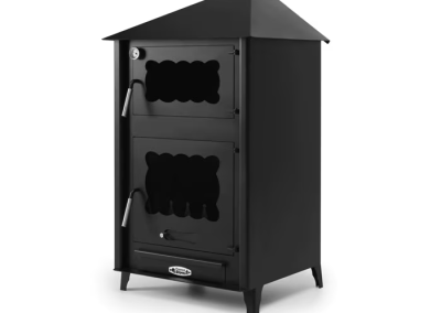 El modelo Everest es una estufa tradicional con campana y horno en la parte superior con gran grosor. Fabricado en acero para una mayor potencia calorífica y duradera. Parrilla de fundición de gran tamaño y cajón recoge cenizas cómodo para su extracción. Incluye gancho atizador. Los pomos y los tiradores han sido fabricados en acero inoxidable para una vida más duradera. Salida de humos superior. El hono incluye ladrillo reflectario y un termómetro para controlar la temperatura. Tiene la opción de una parrilla para asar muy fácil de colocar.