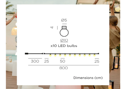 A diferencia de la mayoría de las guirnaldas del mercado, lleva 10 Bombillas LED integradas que aportan un diseño novedoso y una iluminación ambiental muy destacable.
