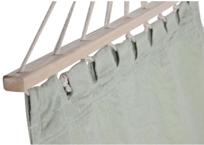 Te presentamos la Hamaca algodón verde, un producto de fiel representación al estilo natural, versátil, funcional y muy confortable. Está confeccionada con una mezcla de algodón y poliéster de alta calidad, resultando una hamaca perfecta tanto para el exterior como para el interior de tu hogar. Puedes combinarla con nuestros cojines para que resulte mucho más confortable y crear tu propio espacio de relax con el máximo estilo. ¿A qué esperas para disfrutar de tus momentos de relax en el jardín o terraza con la hamaca algodón verde?