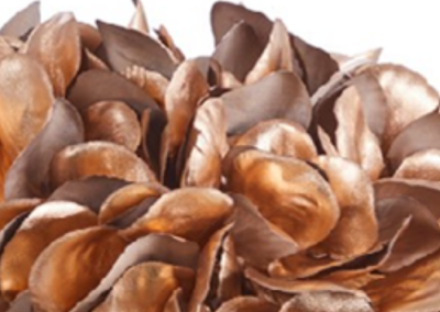 Te ofrecemos la Hortensia metalizado en dorado  con la que podrás darle un toque de color elegante y sofisticado a tu decoración navideña. Flexible y versátil l podrás utilizar tanto en jarrones como para darle un toque especial a tu arbol de navidad.