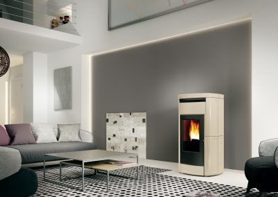 Modelo diseñado para un fácil acceso a mantenimientos. Largo: 65cm. Profundidad: 63cm. Altura: 123,5cm. Potencia útil: 4,8-12,6kw. Rendimiento (%): 90,9%. Consumo mín-máx. (kg/h): 1,1-2,9kg/h. Volumen calefactable (m3): 330m3. Capacidad del depósito (kg): 32kg/h. Autonomía mín-máx (h.): 11-29. Diámetro salida de humos (mm): 80mm. Diámetro aspiración de aire (mm): 40mm. Programación diaria / semanal. Función EASY TIMER. Sistema The Mind con WI-FI integrado. Función RELAX (aire caliente desactivable).