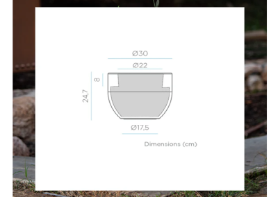 Macetero Azalea fabricado en plástico apto tanto para exteriores como interiores, con una bonita línea curva, siendo la parte de abajo más estrecha y la parte de arriba más ancha.