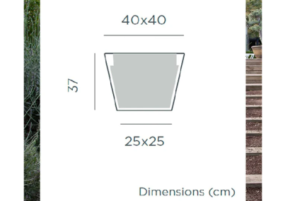 Macetero Clavel fabricado en plástico apto tanto para exteriores como interiores, con una bonita línea recta, siendo la parte de abajo más estrecha y la parte de arriba más ancha.