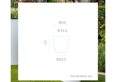 Macetero Letavio fabricado en plástico apto tanto para exteriores como interiores, con una bonita línea curva, siendo la parte de abajo más estrecha y la parte de arriba más ancha.