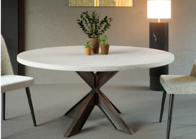 Además te ofrecemos la posibilidad de hacerla a medida, con 8 opciones de madera diferentes, y 5 acabados difentes del hierro en las patas. Cambia no solo la medida sino la forma de la mesa y haz que se adapte a tus necesidades.