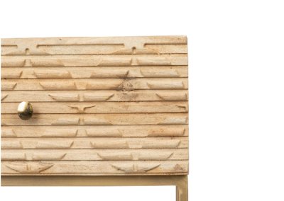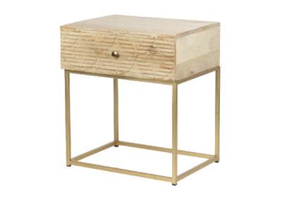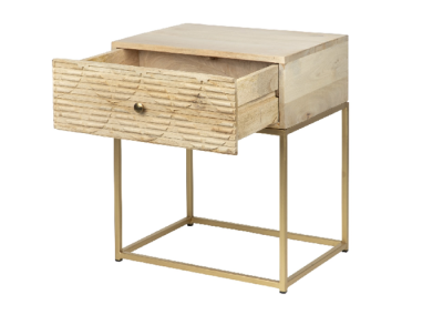 Sencilla pero con un toque de esilo así es la mesita 1 cajón, una mesita fácil de limpiar, con sus patas en dorado y con el grabado de su frontal són los detalles que marcan la diferencia.