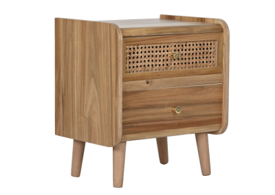 En Mira y Decora apostamos por las últimas tendencias en decoración de interiores y por eso te presentamos esta mesita de noche , inspirada en el más puro estilo vintage y fabricada en madera de acacia. Un material robusto y resistente muy utilizado en la ebanistería. La Mesita de Noche de acacia, es perfecta para completar la decoración de tu dormitorio, una mesa con dos cajones uno de ellos decorado con una rejilla que te aportan espacio extra de almacenamiento y te permiten mantener en orden y limpia la estancia además de tener siempre cerca todo lo que necesites para descansar felizmente.