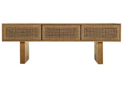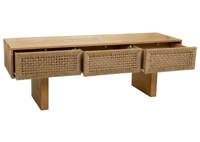 Un diseño lleno de personalidad. ¿Quién dijo que la madera tenía que ser aburrida? Te presentamos nuestro mueble de tv de madera y cuerda trenzada una buena opción si tu estilo es clasico pero quieres darle un toque diferente. Con este mueble obtendrás lo mejor de dos mundos la durabilidad y resistencia de la madera y el toque moderno y que lo hará destacar gracias a su cuerda trenzada en el frontal de sus 3 cajones. Además ganarás espacio de almacenaje.