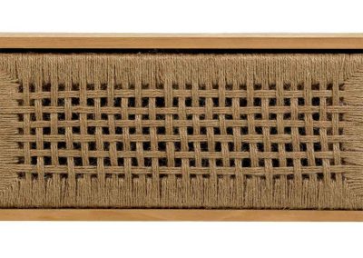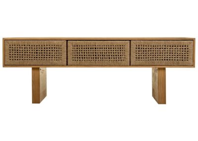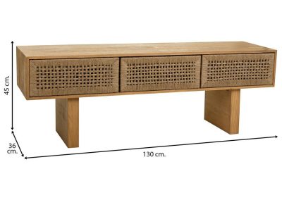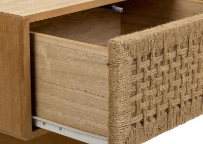 Un diseño lleno de personalidad. ¿Quién dijo que la madera tenía que ser aburrida? Te presentamos nuestro mueble de tv de madera y cuerda trenzada una buena opción si tu estilo es clasico pero quieres darle un toque diferente. Con este mueble obtendrás lo mejor de dos mundos la durabilidad y resistencia de la madera y el toque moderno y que lo hará destacar gracias a su cuerda trenzada en el frontal de sus 3 cajones. Además ganarás espacio de almacenaje.