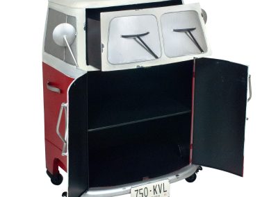 Si buscas un mueble único y diferente este es el mueble que buscas. Nuestro Mueble furgoneta esta fabricado en metal y pintado en los colores clásicos si pensamos en una furgoneta hippie. Cuenta en su interior con dos lejas y un cajón para poder guardar tus objetos. Dispone de ruedas para qmoverlo sin esfuerzo.