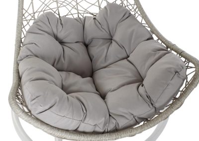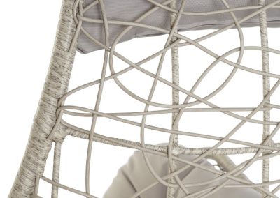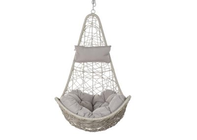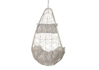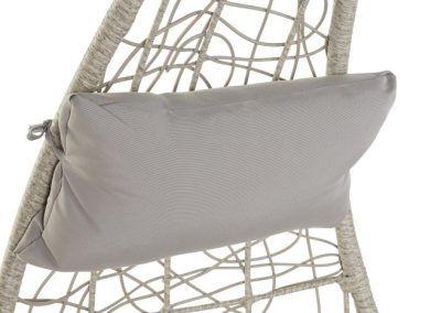 Esta pieza es tan original que llama la atención en cualquier estancia en la que la quieras añadir. El Sillón Colgante con Cojín es el elemento único que está pidiendo a gritos tu comedor. La estructura es de hierro galvanizado, un material robusto y resistente. Su magnífico asiento está hecho de un trenzado de ratán sintético, que es la clave del diseño. También incluye unos mullidos cojines no desenfundables en poliéster, con relleno de polycotton, una mezcla de algodón y poliéster, que aumentan la comodidad del sillón. Puedes colgarlo del techo con la cadena.