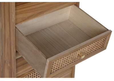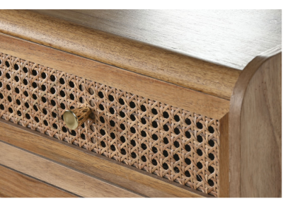 Si buscas un mueble de almacenaje práctico y funcional, pero no quieres renunciar al diseño y la elegancia, nuestro sinfonier de acacia es perfecto para ti. De estilo natural, cuenta con 6 cajones, con cierre de metal, que te ayudarán a mantener el orden en tu salón o dormitorio. Fabricado en madera de acacia, presenta unas vetas y coloración que resalta su belleza natural, además cuenta con una rejilla en cajones alternos que le da un toque diferente. Podrás combinala con las dos mesitas del mismo estilo para completar tu estancia.