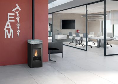Modelo diseñado para un fácil acceso a mantenimientos. Largo: 52cm. Profundidad: 53cm. Altura: 102cm. Potencia útil: 6,9kw. Rendimiento (%): 88%. Consumo mín-máx. (kg/h): 0,7-1,6kg/h. Volumen calefactable (m3): 180m3. Capacidad del depósito (kg): 20kg/h. Autonomía mín-máx (h.): 13-29. Diámetro salida de humos (mm): 80mm. Diámetro aspiración de aire (mm): 40mm. Programación diaria / semanal. Función EASY TIMER. Sistema The Mind con WI-FI integrado. Función RELAX.
